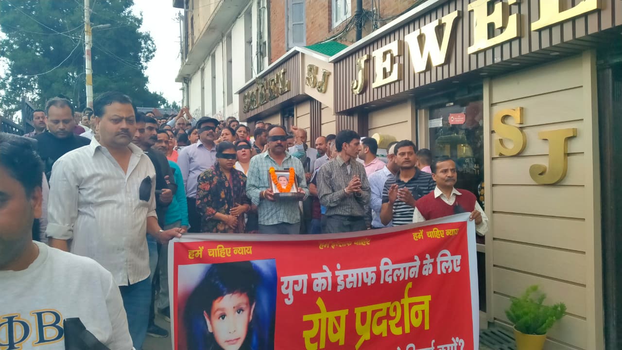 Shimla (Himachal Pradesh) [India], September 25 (ANI): Anguished residents of Shimla, along with family members of four-year-old Yug Gupta, who was brutally murdered in 2014, took to the streets on Thursday in protest against the Himachal Pradesh High Court’s recent decision commuting the death sentence of two convicts to life imprisonment and acquitting a third accused.