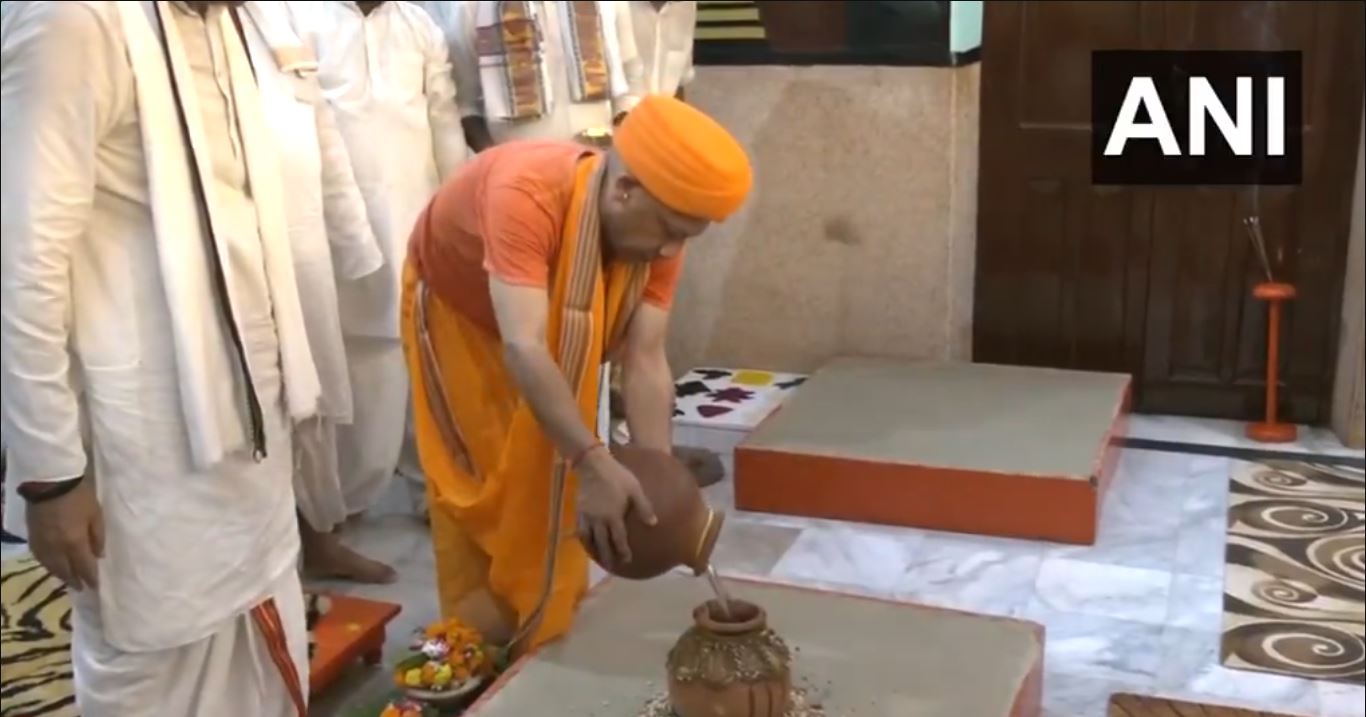 Gorakhpur (Uttar Pradesh) [India], September 22 (ANI): Uttar Pradesh Chief Minister Yogi Adityanath on Monday performed aarti along with Kalash Sthapana at Gorakhnath Temple on the occasion of Sharadiya Navratri, starting from today.